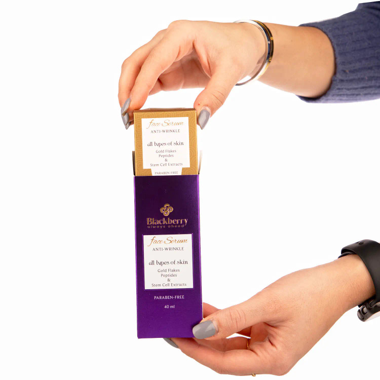 ایجاد چین و چروک برروی صورت یکی از مهمترین نشانههای افزایش سن به شمار رفته و افراد تلاش فراوانی برای مدیریت این پدیده ناخوشایند میکنند. عوامل متعددی در ایجاد چین و چروک پوست نقش دارند که از آن جمله میتوان به کاهش تعداد و فعالیت سلولهای بنیادی پوست، کمبود انرژی سلولی برای انجام فرآیندهای حیاتی پوست، فعال شدن آنزیمهای مخرب در پوست تحت تاثیر اشعه ماورای بنفش و آلودگی محیطی، سرعت کم بازسازی کلاژن و الاستین و... اشاره کرد. بنابراین یک محصول مناسب برای کاهش و رفع چین و چروک باید این عوامل را به نحو مطلوبی کنترل کرده و با کاهش اثرات آنها باعث جوان شدن پوست شود. سرم صورت ضدچروک حاوی ذرات طلا بلک بری با بهرهگیری از فناوریهای روز دنیا (PhytoCellTec، ...) در همین راستا تولید و عرضه شده است.