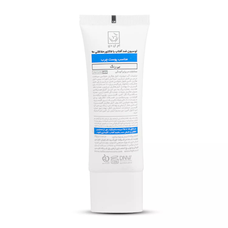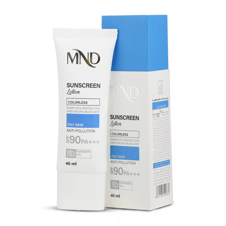 لوسیون ضد آفتاب با فاکتور حفاظتی 90 (SPF 90) مناسب پوست چرب بی رنگ ام ان دی 40 میلیلیتر