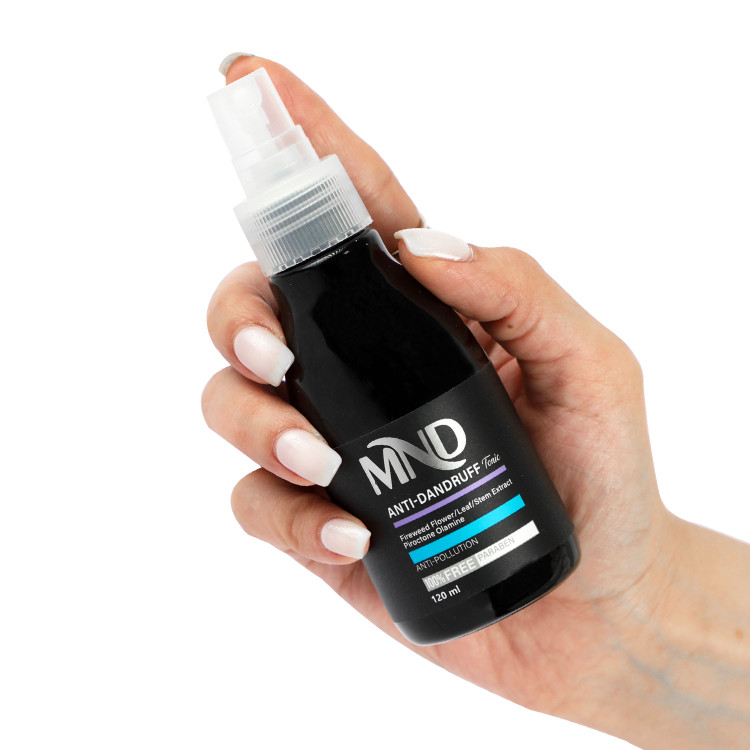 تونیک تقویت کننده مو MND عصاره برگ کهندار را در خود دارد که باعث افزایش طول عمر سلولهای موجود در فولیکول مو شده و محرک تولید فاکتورهای رشد مو است. بهعنوان مکمل، از کافئین نیز بهره گرفته شده است که تحقیقات علمی متعدد اثبات کردهاند که سطح انرژی سلولی در ریشه موها را افزایش داده و با تحریک تولید ترکیبات لازم برای رشد مو باعث افزایش تراکم موهای سر میشود. چون تامین مواد برای ریشه موها اهمیت فوقالعاده زیادی در رشد موها دارد، از عصاره پوست درخت دارچین نیز در این محصول کمک گرفته شده تا گردش خون در پوست کف سر بهبود یافته و فولیکولهای مو بهترین مواد را برای رشد، دریافت کنند. البته باید تاکید کرد به دلیل اینکه بیوتین نقش موثری در رشد مو دارد این ویتامین بهصورت مستقیم به تونیک اضافه شده است تا مصرف این محصول به تنهایی راهی برای تامین بیوتین برای ریشه موها باشد. باتوجه به اینکه هورمون DHT تولید شده توسط آنزیم 5-آلفا ریداکتاز، باعث ریزش موی ارثی میشود، عصاره کیگلیا آفریقایی به عنوان مهارکننده این آنزیم در محصول گنجانده شده تا به همراه عصاره برگ زیتون که بهبود دهنده نسبت فاز آناژن به کاتاژن در موهای سر است، باعث افزایش تراکم مو در سر شوند. چون آلودگی محیطی با ایجاد التهاب در پوست سر، موجب تسریع و تشدید ریزش موی سر میشود از عصاره ریشه آنجلیکای کرهای و بیوساکارید-گام 4 نیز برای ممانعت از این مشکل استفاده شده است.